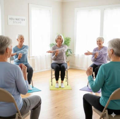 Our sessions, including Chair Yoga, Flow Yoga, and mat Pilates, are designed to build functional strength and increase fluid flexibility and balance. You will learn specific breath practices to achieve the results your body is looking for—bridging the gap between the physical body and total wellness. We don’t just move; we cultivate longevity, ensuring your body remains a powerful vehicle for your best years. For those looking toward the future, we focus on preventing falls as we age, ensuring you remain steady and confident in every move you make.